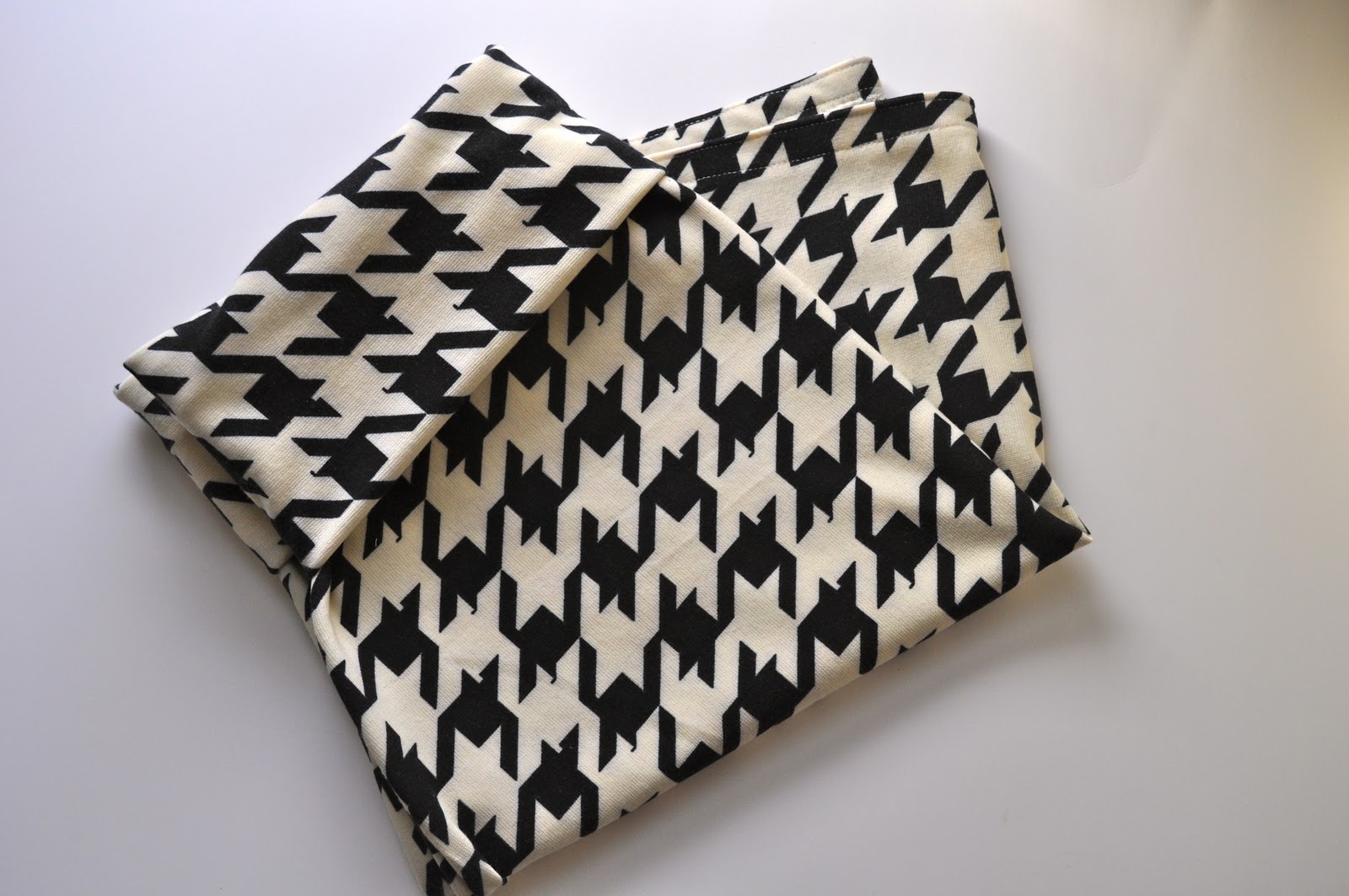 I made a Lil' Scarf (check out the tutorial) with some great medium-weight, stretchy (but not too stretchy) knit houndstooth fabric (clearance at Joann's!). And then figured I'd try a skirt. I love skirts. They work all year round and usually a good one is hard to find (and too expensive). So making one made sense.